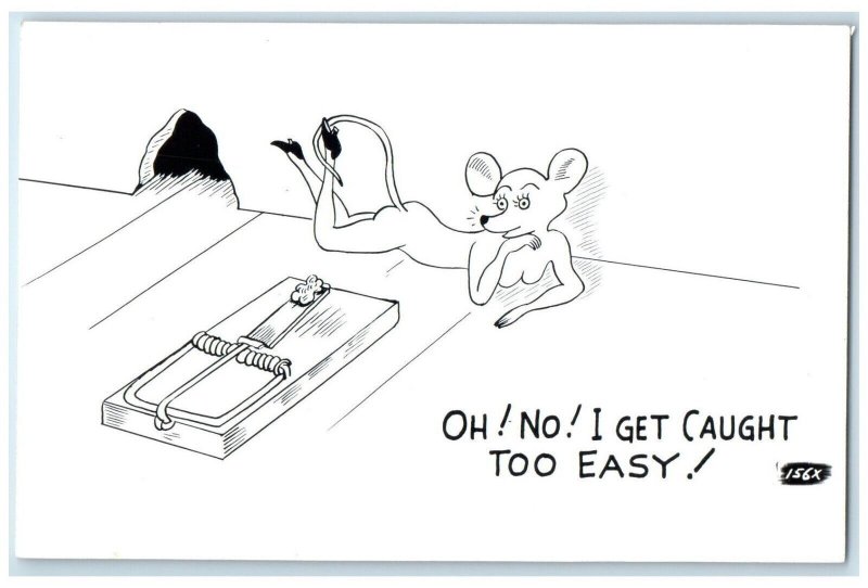 c1940's Mouse Trapped I Get Caught Too Easy Risque Humor Vintage Postcard