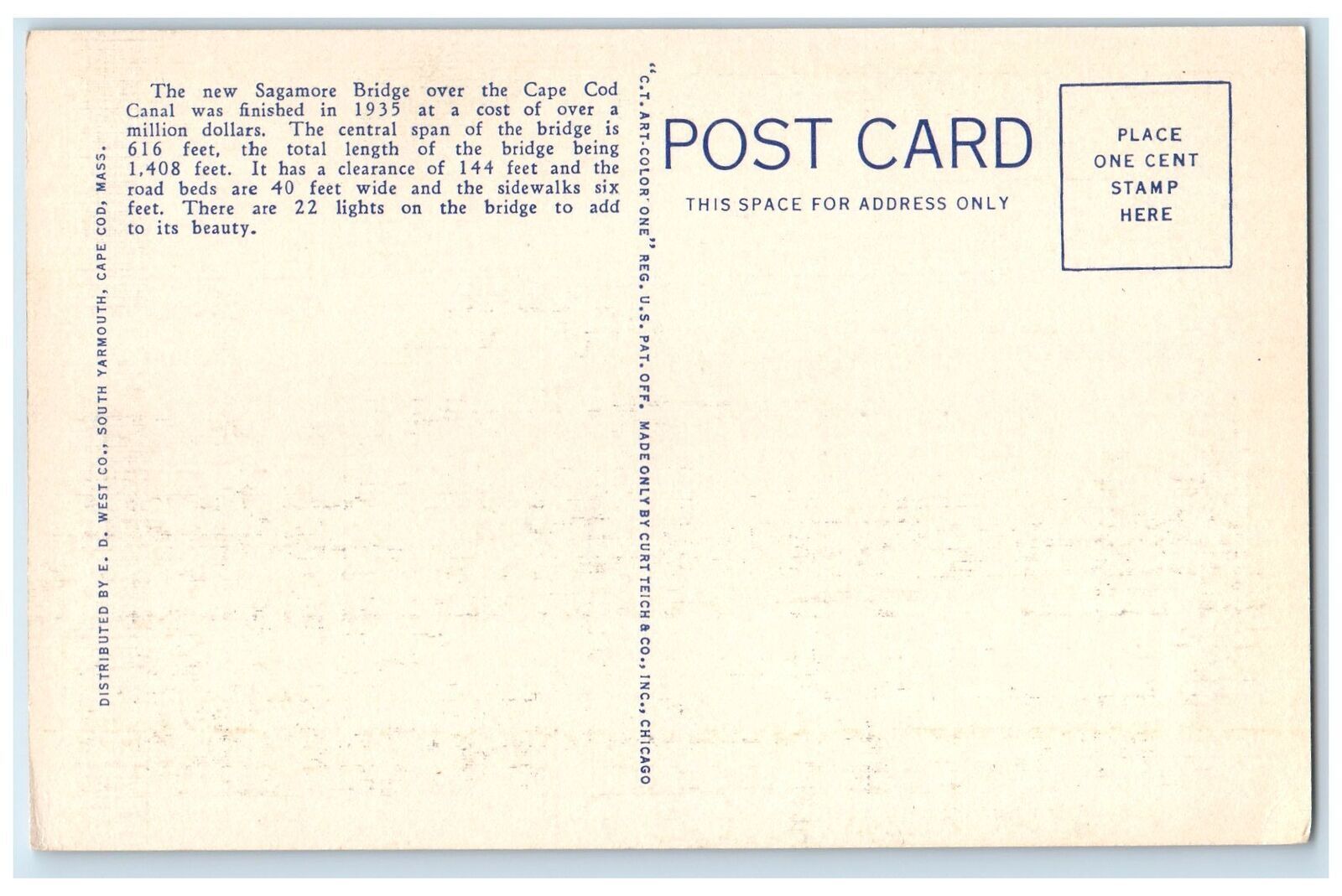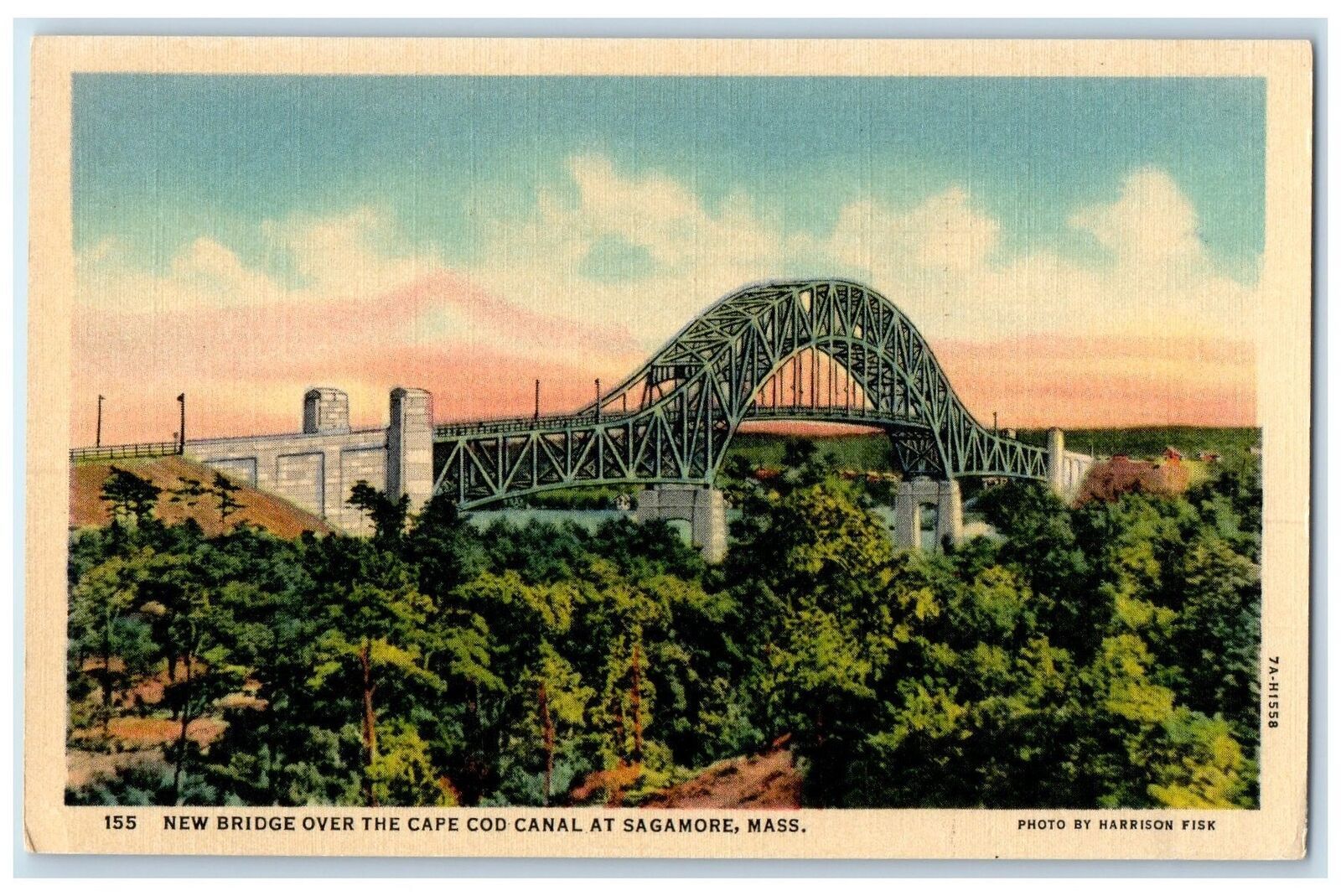 c1940's New Bridge Over The Cape Cod Canal At Sagamore Massachusetts MA Postcard