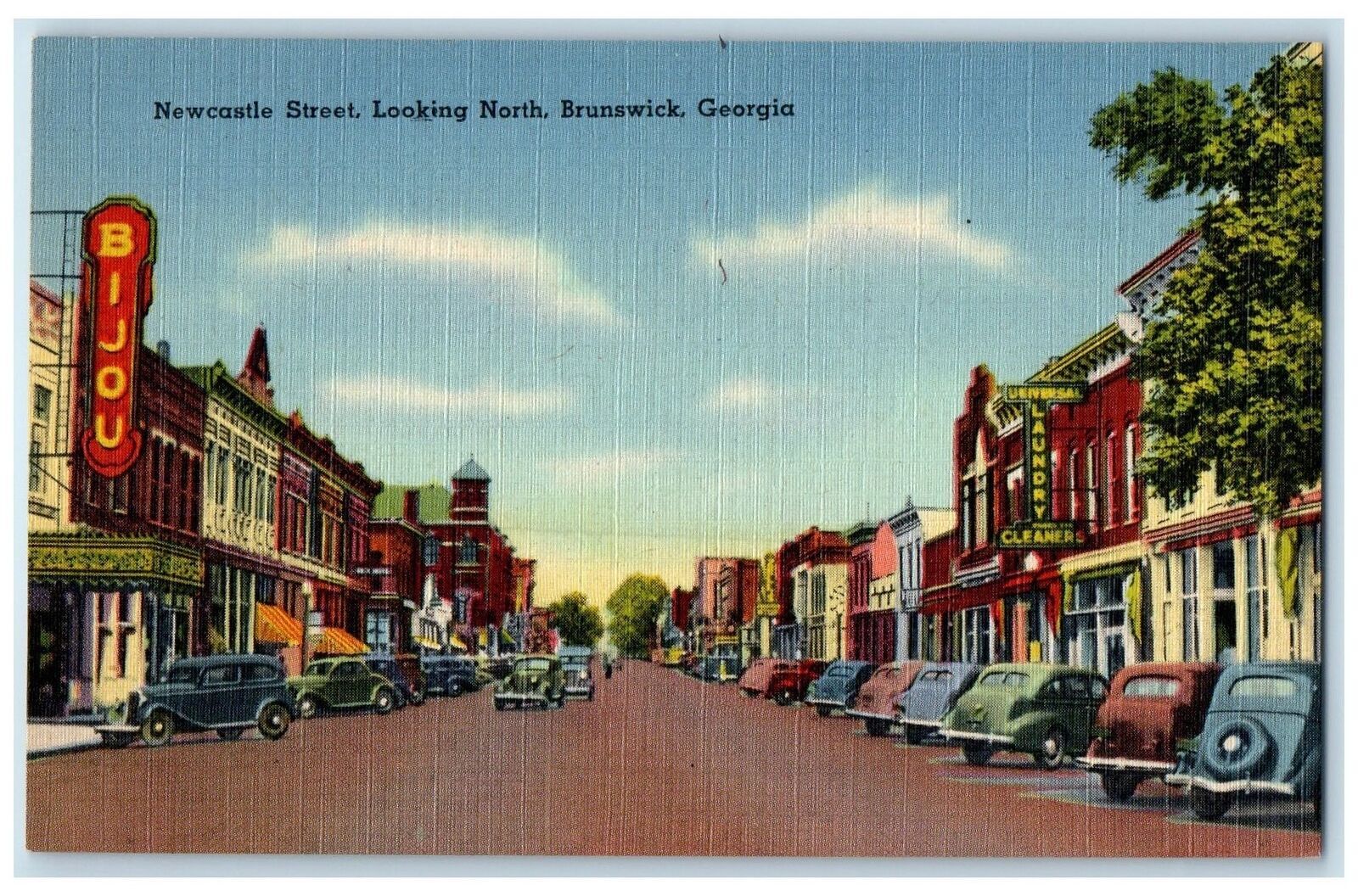 c1940's Newcastle Street Looking North Brunswick Georgia GA Laundry Postcard
