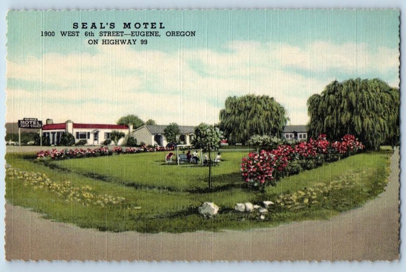 c1940's Seal's Motel & Restaurant Grounds West 6th Street Eugene Oregon Postcard