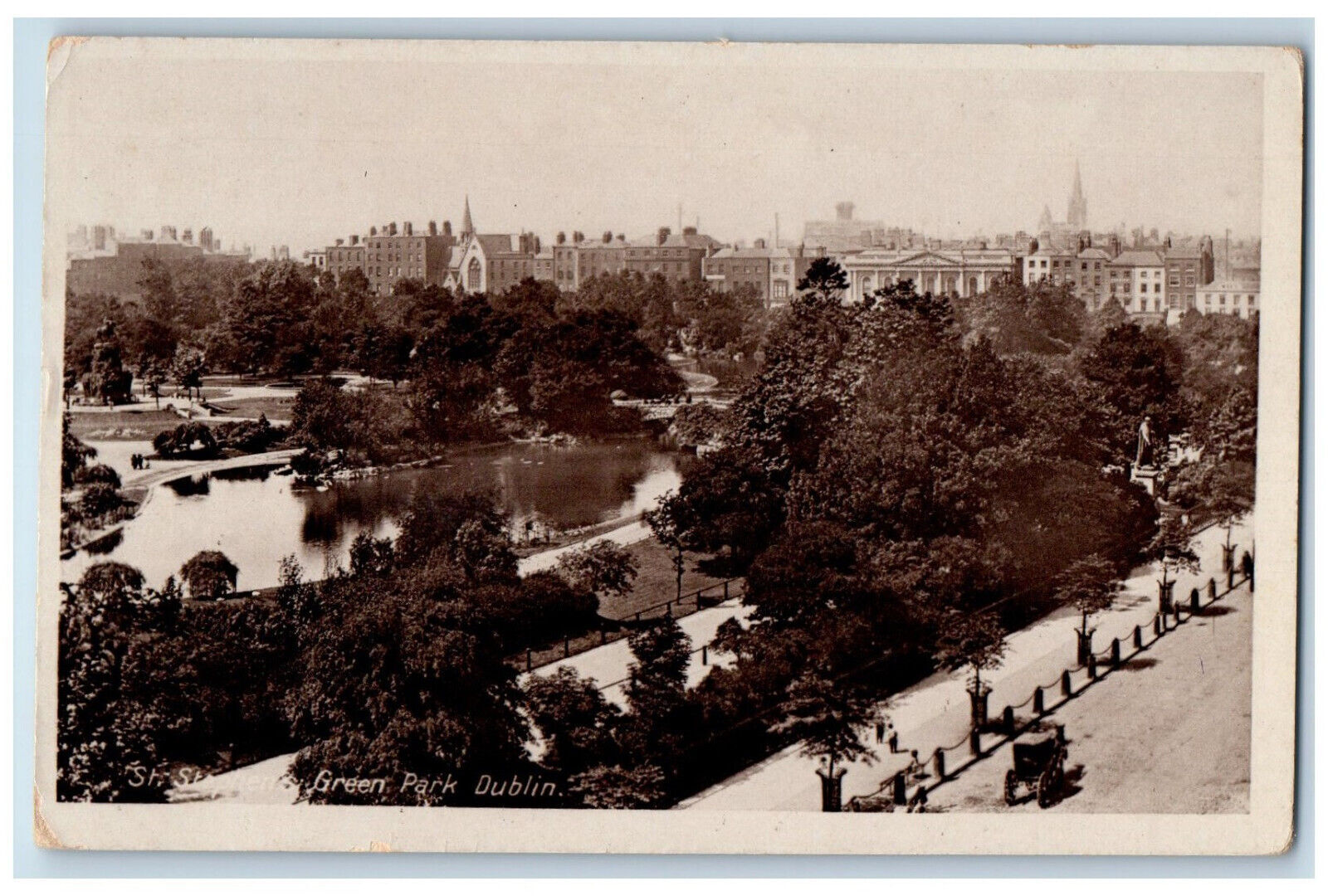 c1940's St. Stephens Green Park Dublin Ireland Vintage Unposted Postcard
