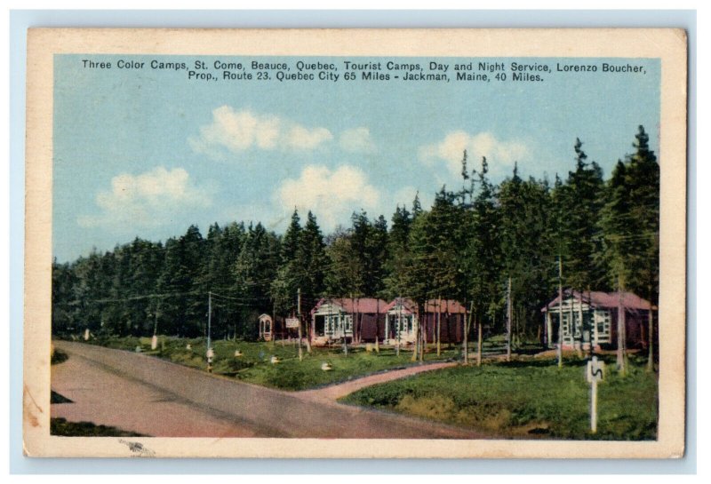 c1940s Three Color Camps St. Come Beauce Quebec Canada Posted Postcard