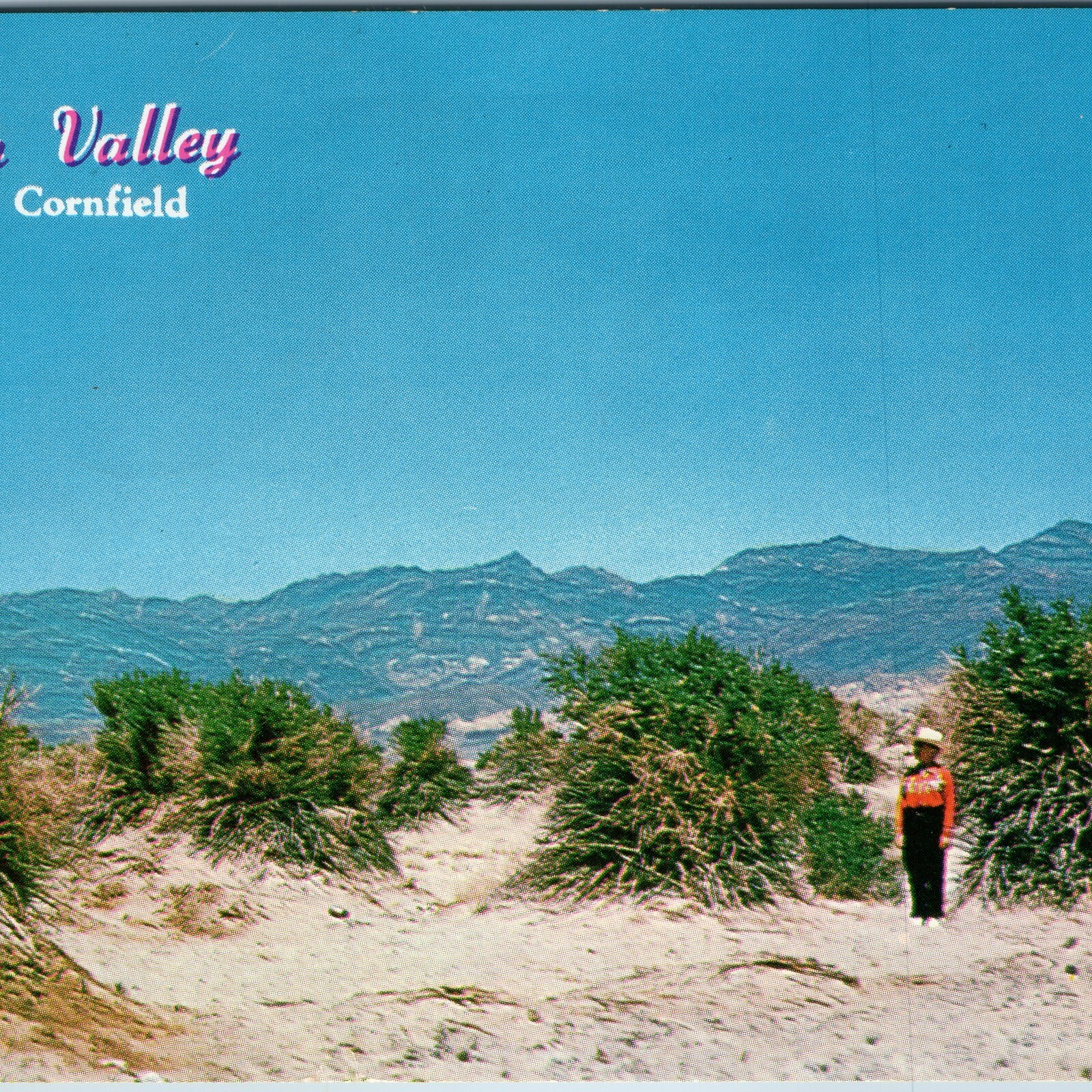 Condition: See photos for details. For sale is a vintage chrome postcard showing Devil's Cornfield in Death Valley, California with desert vegetation, sandy terrain, mountains, and figure. Posted 1952 with message ... Read More