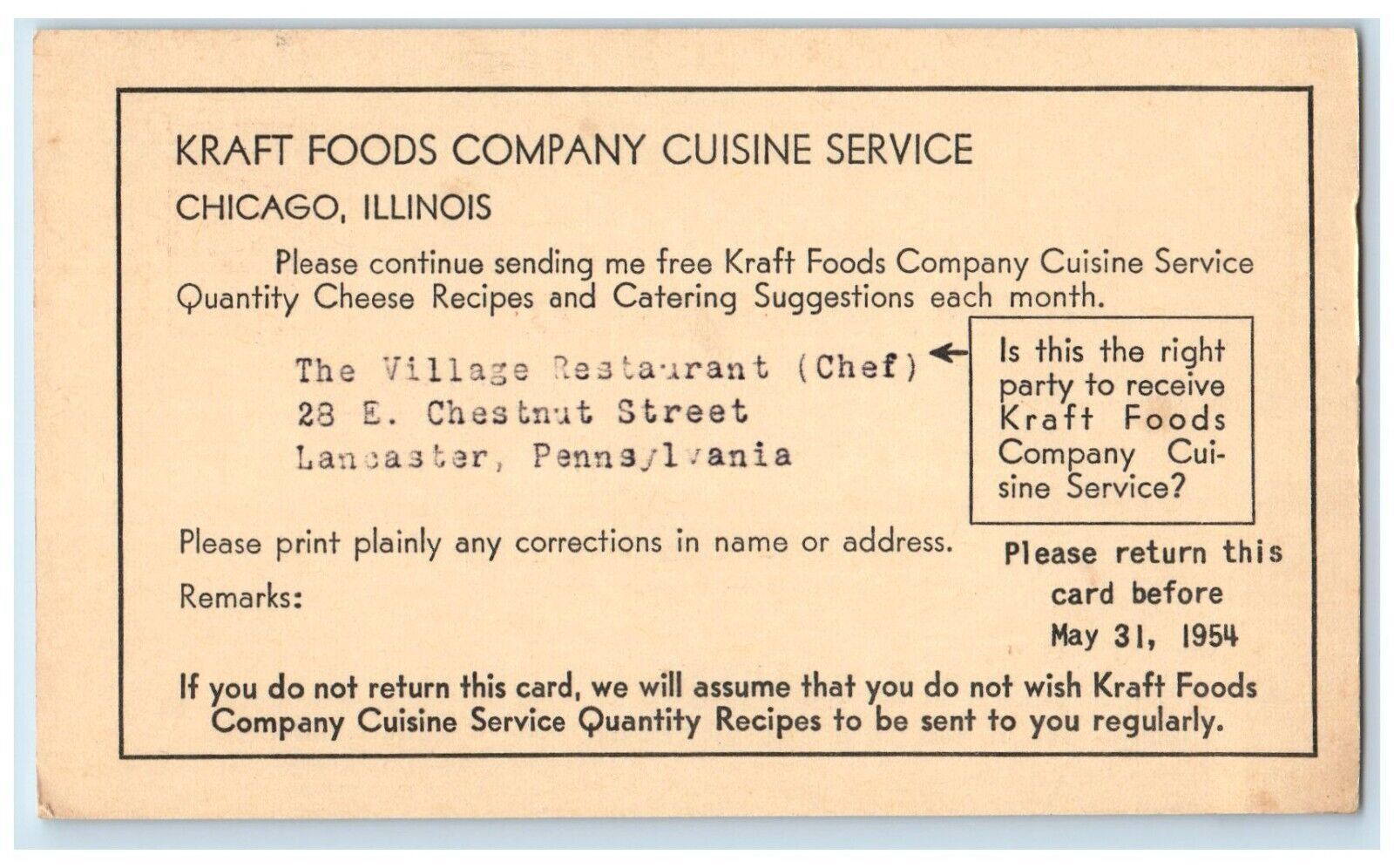 c1954 Kraft Foods Company Cuisine Service Chicago Illinois Advertising Postcard