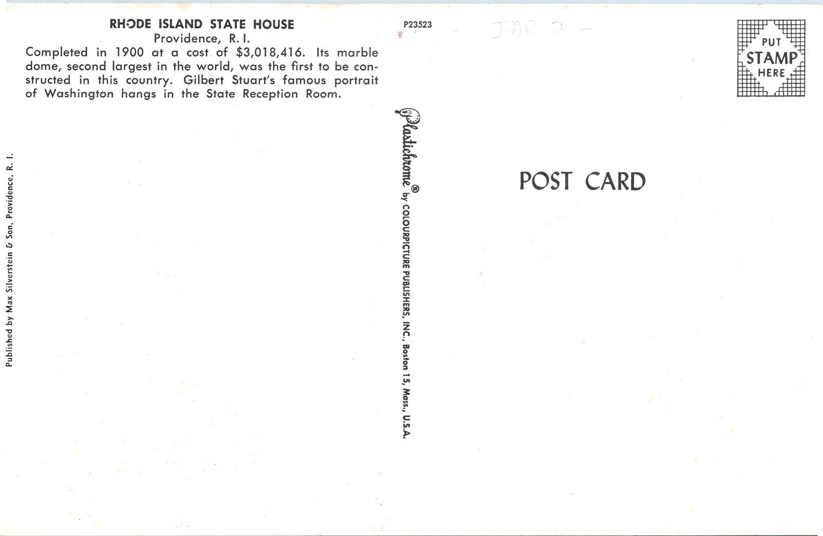 c1960s Providence, RI State House Second Largest Marble Dome Jumbo Postcard N2