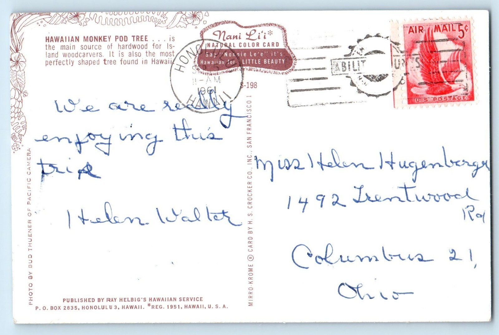 c1961 Honolulu Hawaii HI Vintage Postcard Monkey Pod Tree Main Source Hardwood
