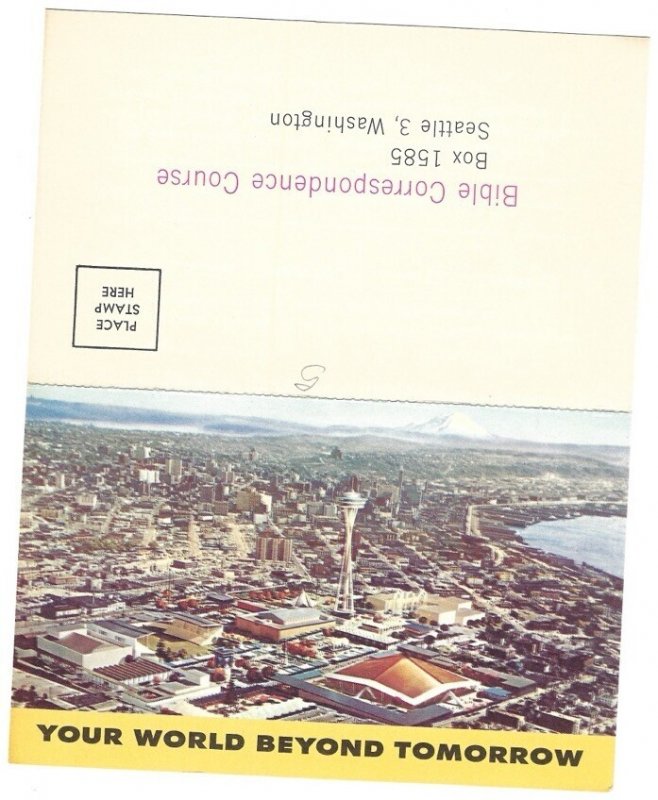 c1962 Seattle World’s Fair Bible Correspondence Course Advertisement Postcard