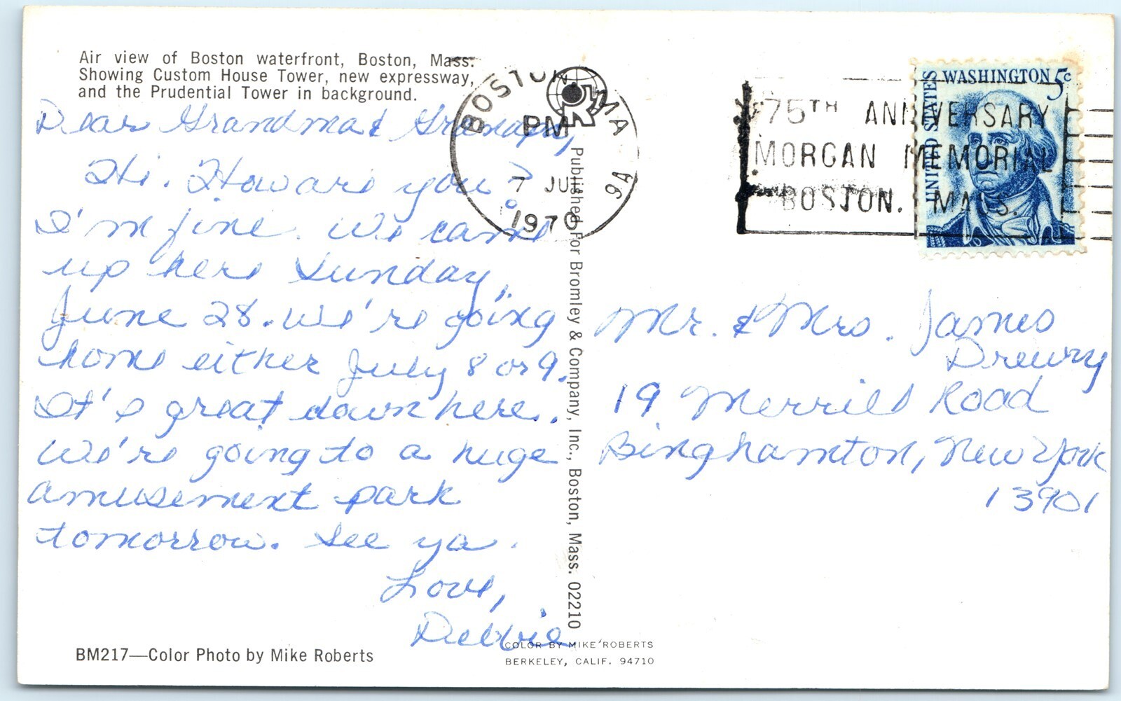 c1970s Boston, MA Waterfront Birds Eye Panorama Prudential Tower Expressway A305