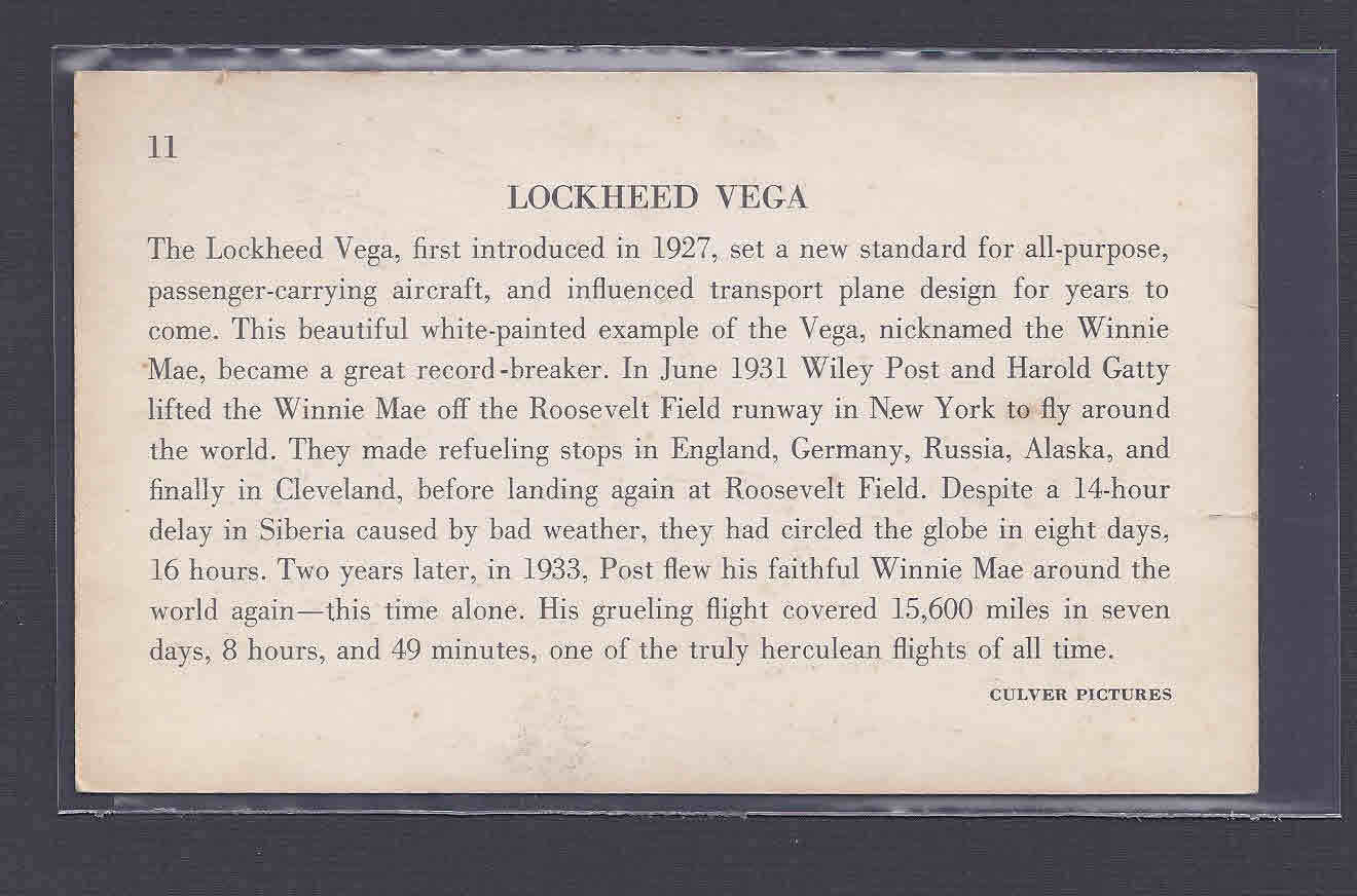 Ca 1945 AIRPLANE LOCKHEED VEGA W/DATA ON BACK MINT PICTURE POSTCARD