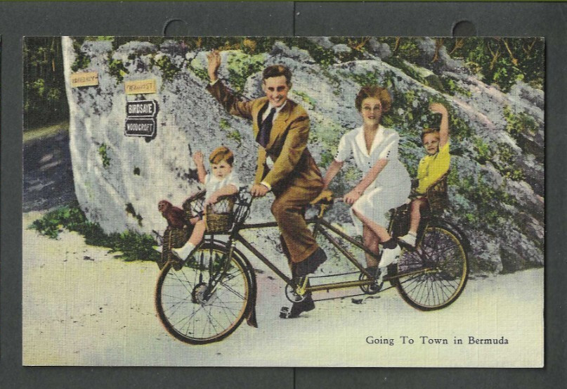 Ca 1945 Post Card Bermuda Couple Cycling