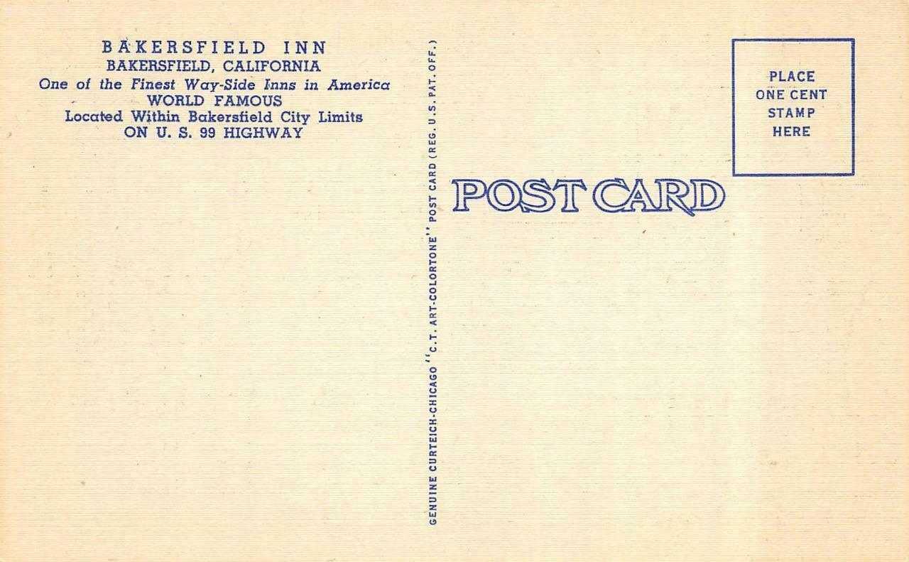 Ca, california bakersfield inn pool & approach roadside *two* c1940's postcards