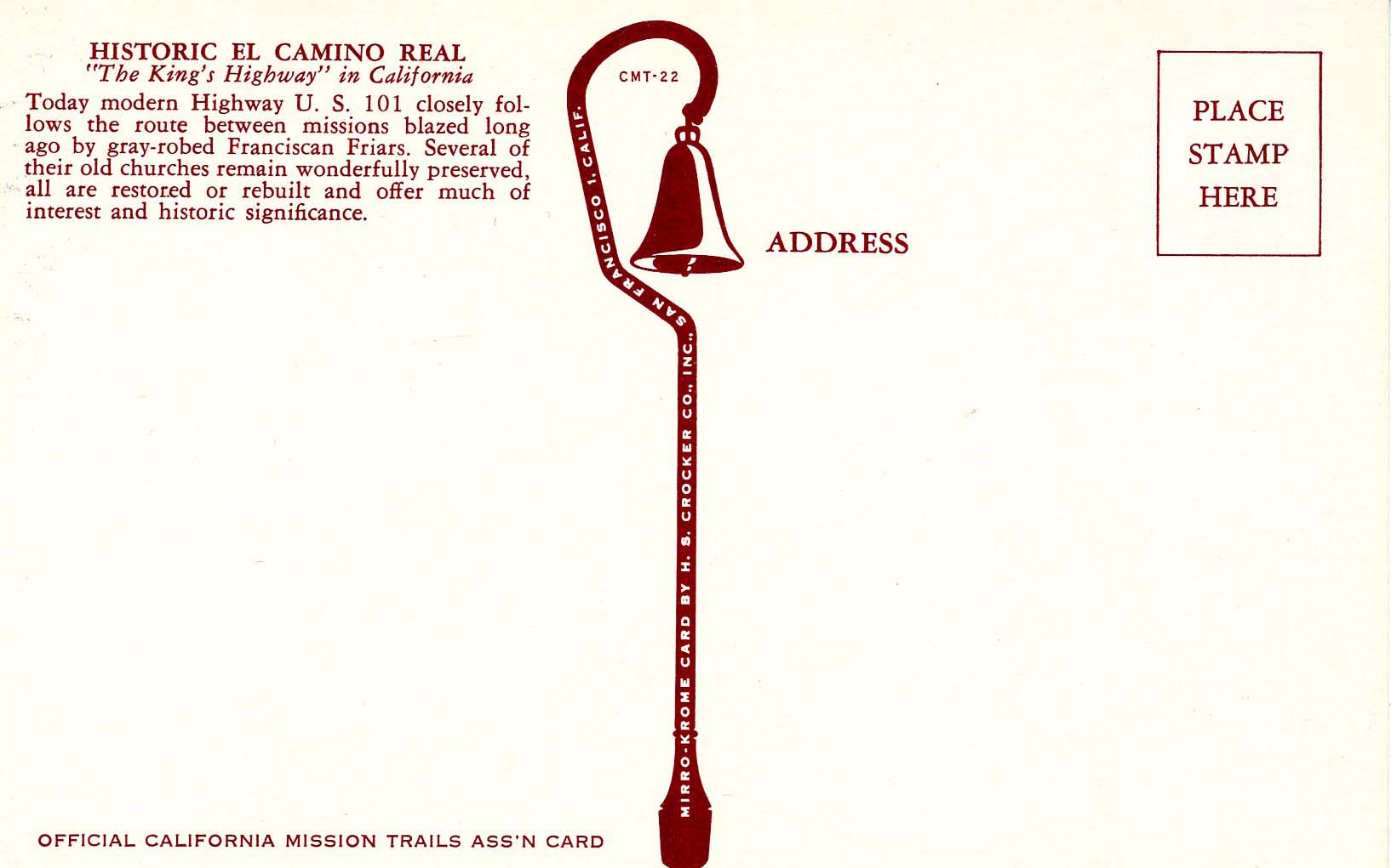 CA - California Missions. El Camino Real, Map