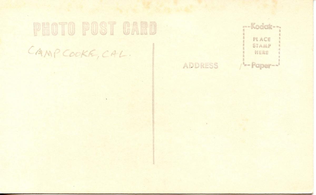 CA - Camp Cooke, Military Maneuvers *RPPC E, Un, Db, Wob, Rppc- Kodak Grading of Postcards MINT (M): Perfect condition, no apparent blemishes, flaws, postally unused, may have some writing on back. NEAR MINT (NM) ... Read More