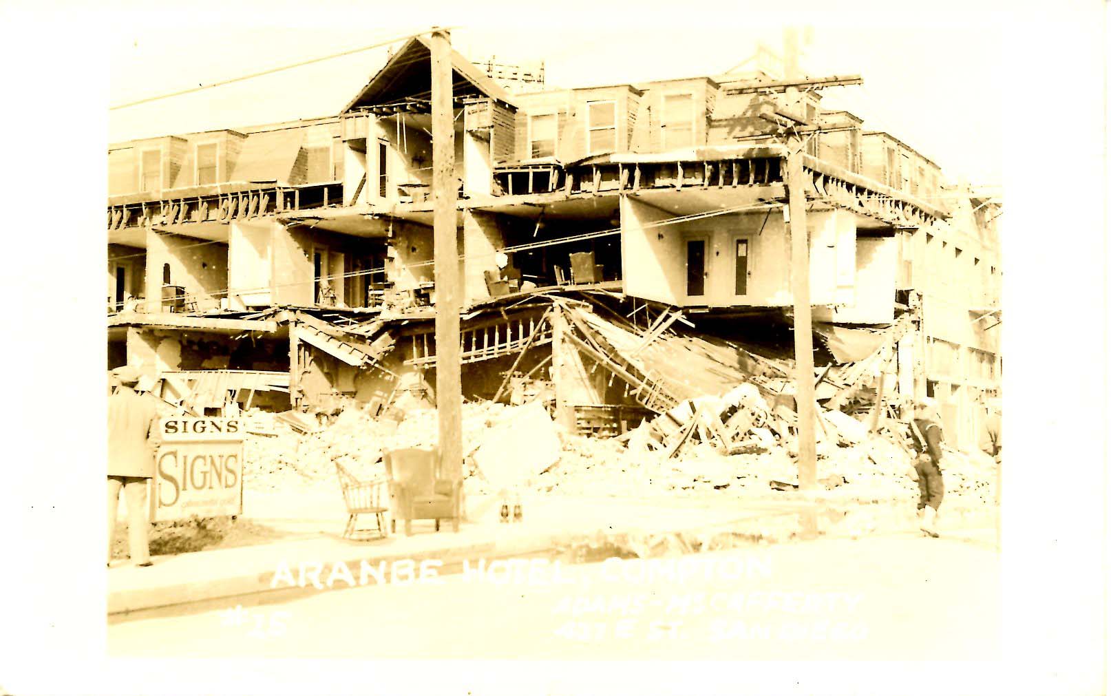 CA - Compton Earthquake, Mar. 10, 1933. Aranbe Hotel *RPPC