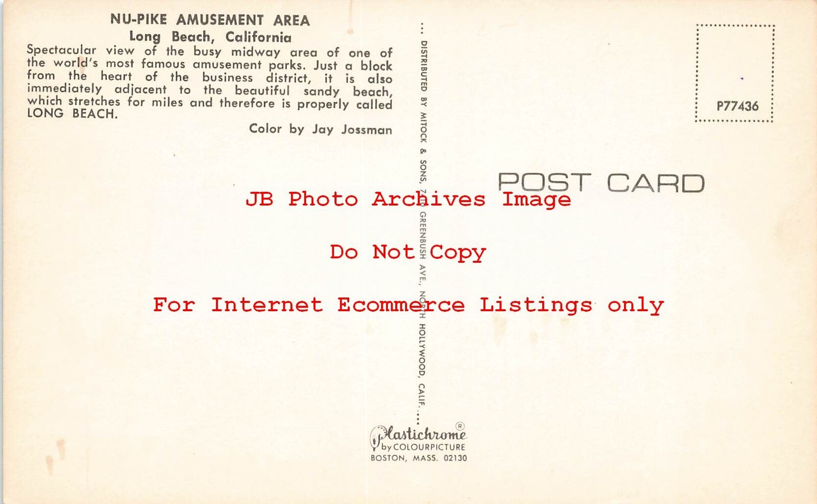 CA, Long Beach, California, Nu-Pike Amusement Rides, Roller Coaster Product Photo Click Image for Larger Preview Product Information This is a nice vintage printed chrome postcard showing a scene of the Nu Pike Amus ... Read More