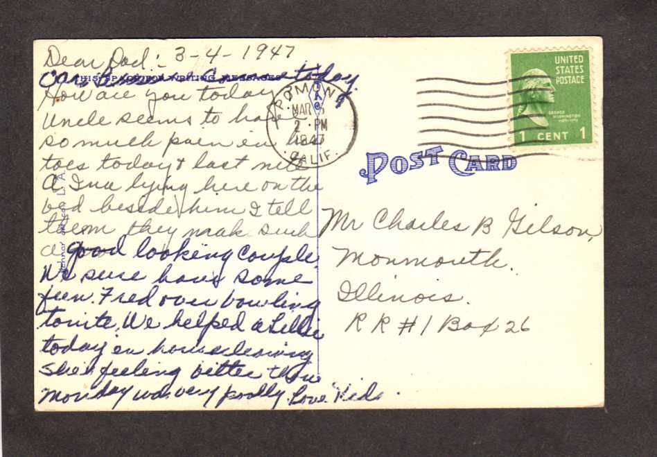 Lot Details- This is a Standard sized postcard (3 1/2" by 5 1/2") with corner and edge wear. Postally used postcard. (PC-1221) (see scans).