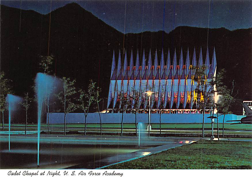 Cadet Chapel - US Air Force Academy, Colorado Grade: 1 Category: Continental Size Postcard, Approx 4 in x 6 in (10 cm x 15.25 cm) Product Size: Continental size: 4X6 inches (10.5 cm x 15 cm) Grading Scale: Gra ... Read More
