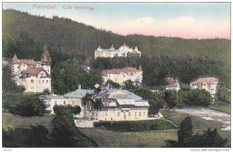 Cafe Bellevue, Marienbad, Czech Republic, 1900-1910s :: Antique (Vintage) Original Postcard, Standard Size (3.5 by 5.5), Litho, EX.