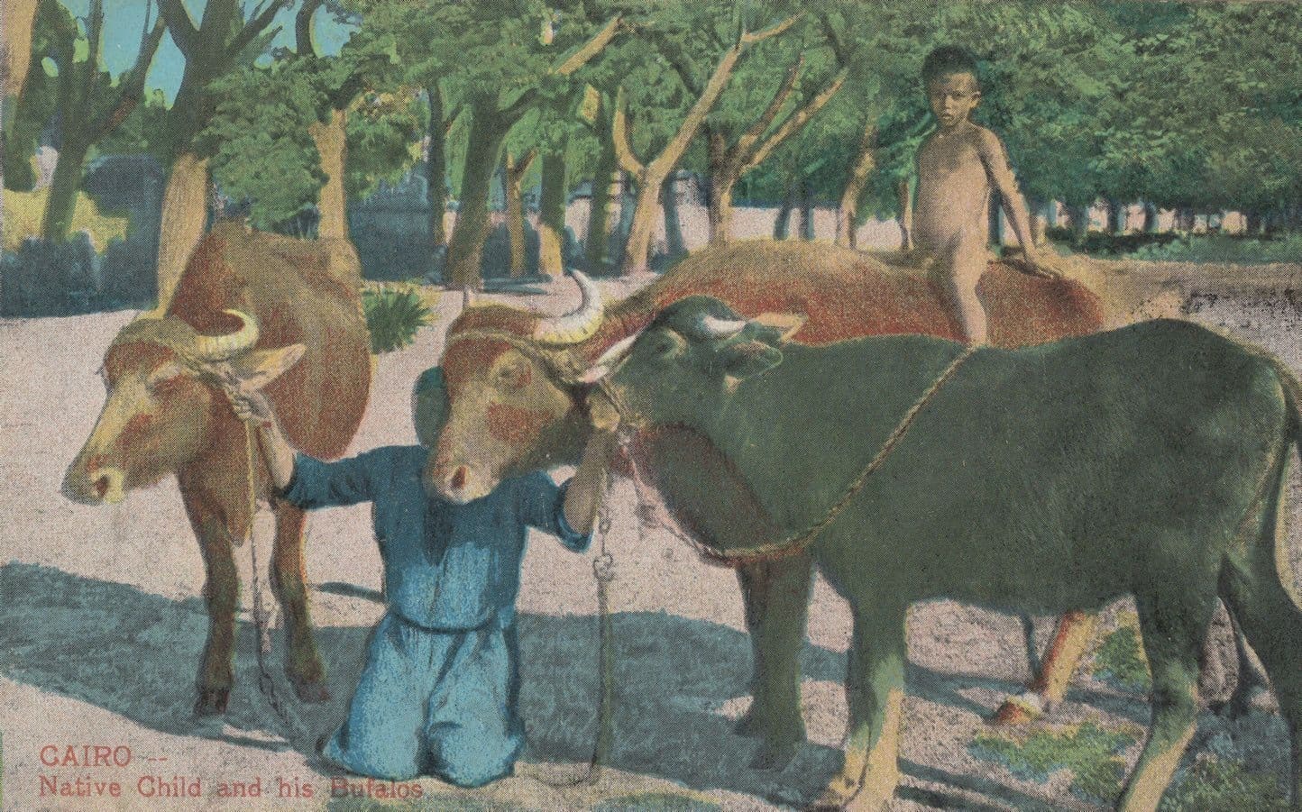 Cairo Child & The Bufalos Antique Egypt Folklore Postcard