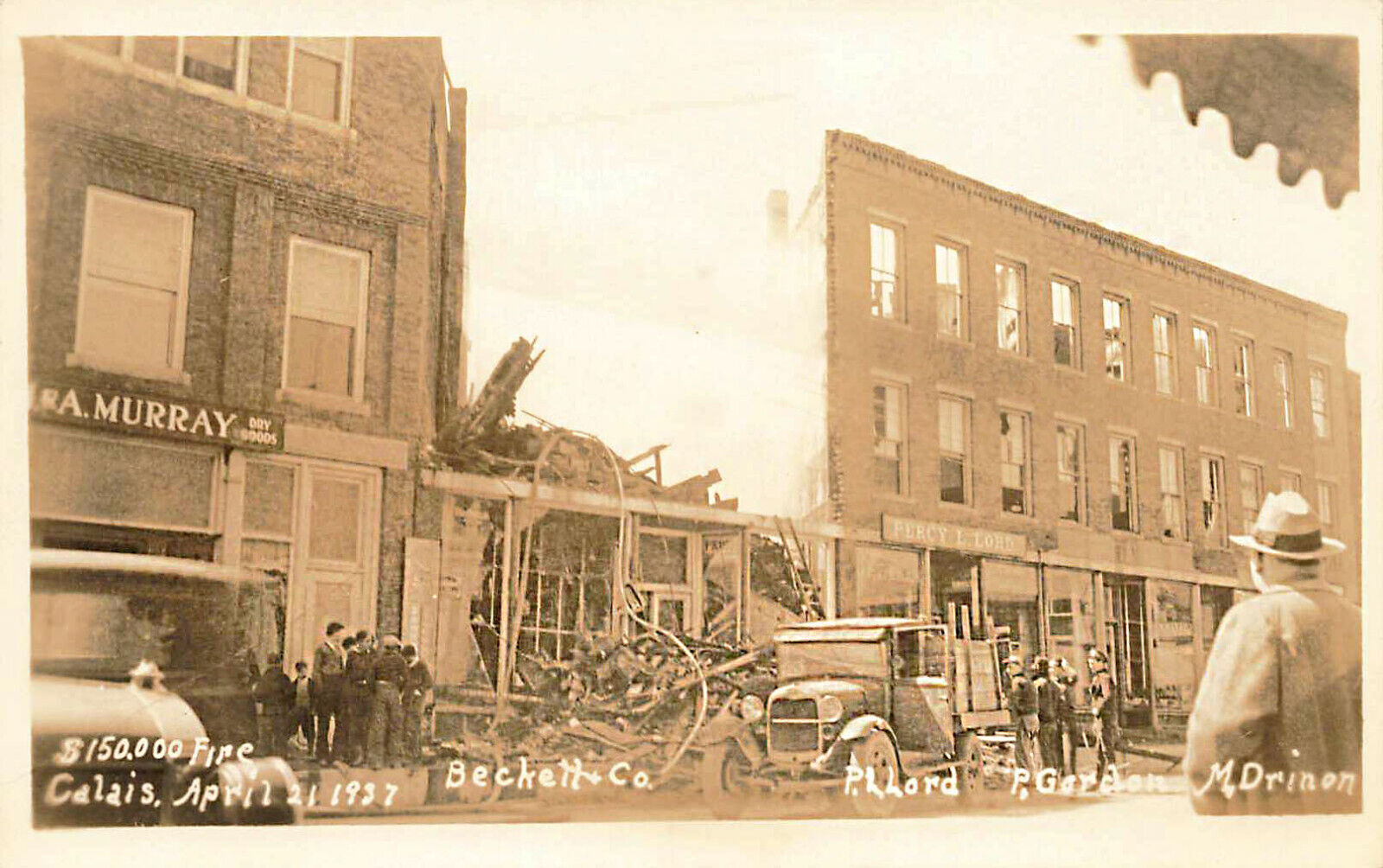 Calais ME Bechett Co. $150,00 Fire Message On Back, Real Photo Postcard