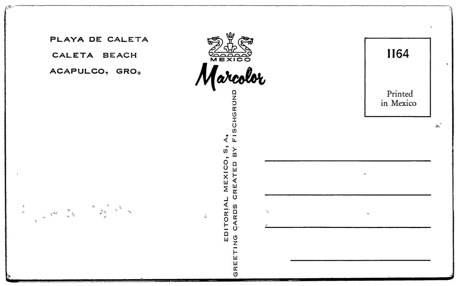 Please carefully examine scans of the front and back of the card to determine the condition. Caleta Beach, Acapulco, Mexico You will receive the exact card pictured in the scans. Size: Standard Size - 3.5" by 5.5 ... Read More
