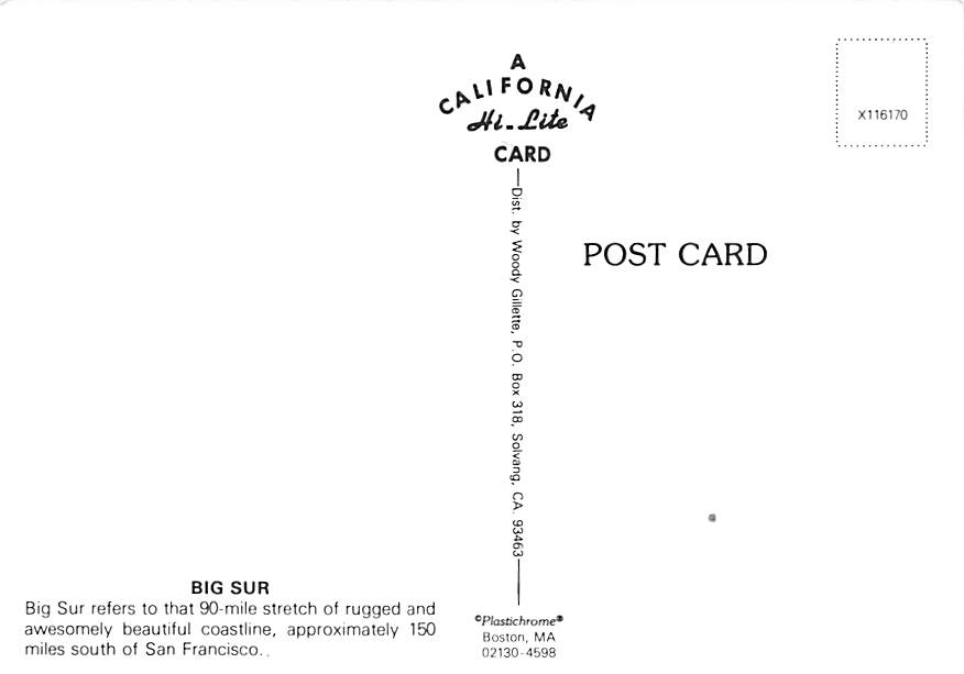 California Coast - Grade: 1 Category: Continental Size Postcard, Approx 4 in x 6 in (10 cm x 15.25 cm) Product Size: Continental size: 4X6 inches (10.5 cm x 15 cm) Grading Scale: Grade 1 = Perfect corners Grade ... Read More