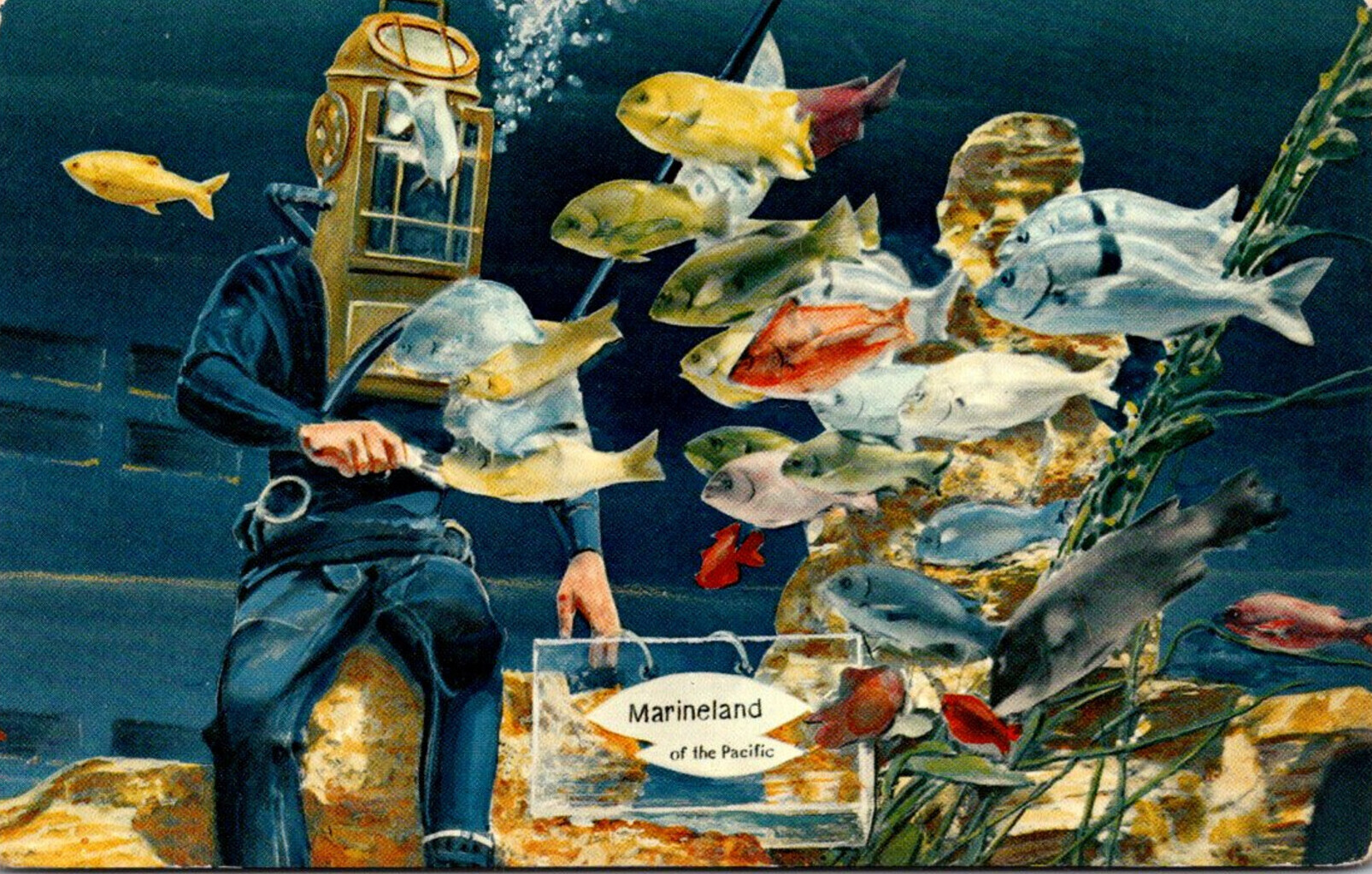 California Marineland Diver Feeding Fish
