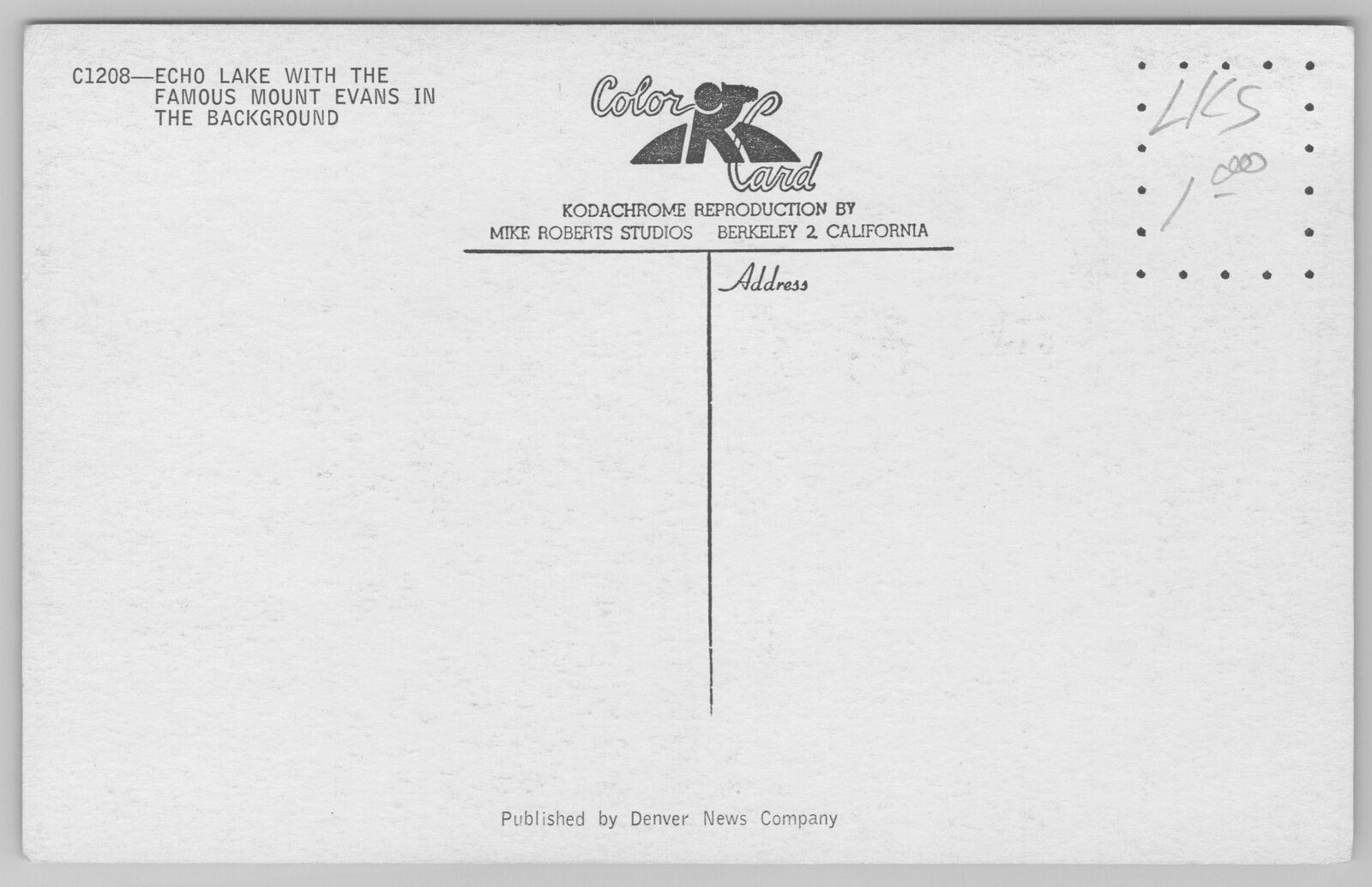 California~Echo Lake With The Famous Mount Evans~Standard Chrome Postcard