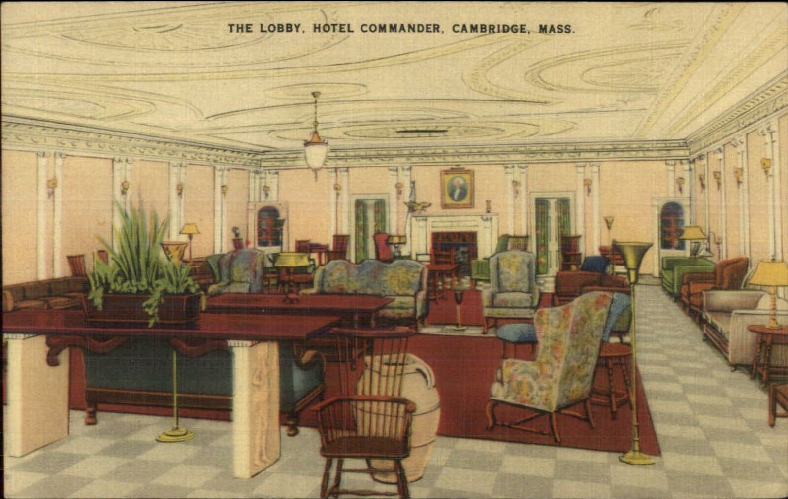 Cambridge MA The Lobby Hotel Commander LINEN Postcard