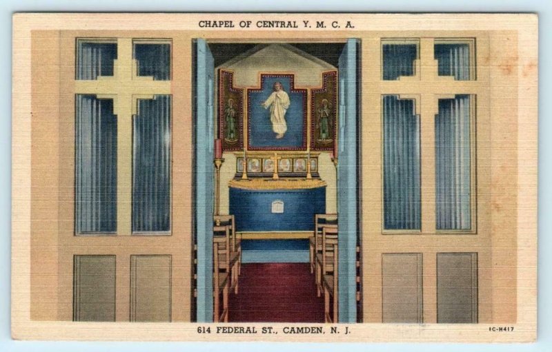 CAMDEN, New Jersey NJ ~ Chapel Interior CENTRAL Y.M.C.A. c1940s Linen Postcard