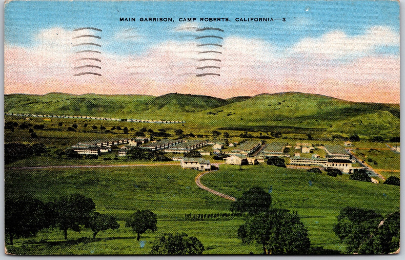 Camp Roberts California CA, 1946 Main Garrison, Barracks, Rolling Hills Postcard