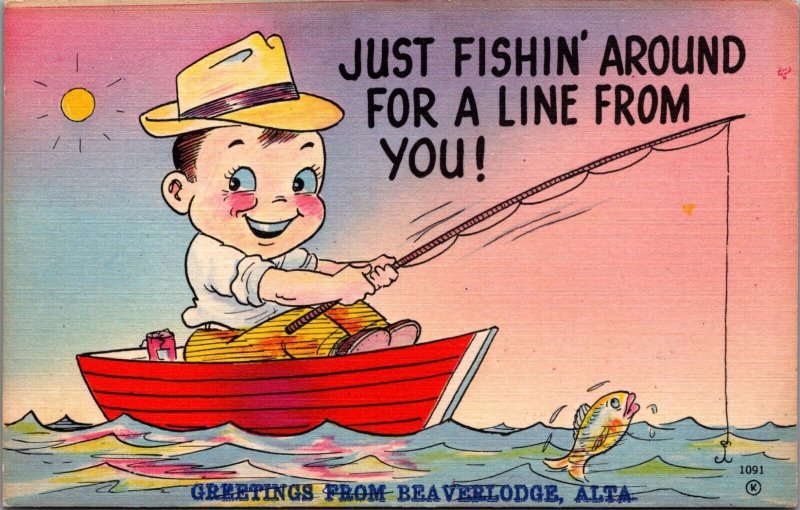 Canada Greetings From Beaverlodge Alberta Comic Linen Postcard C107