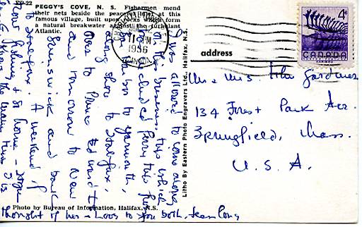 Canada - Nova Scotia. Peggy's Cove VG, PU, DB, C, WOB, CR, PM 1956 Grading of Postcards MINT (M): Perfect condition, no apparent blemishes, flaws, postally unused, may have some writing on back. NEAR MINT (NM): L ... Read More