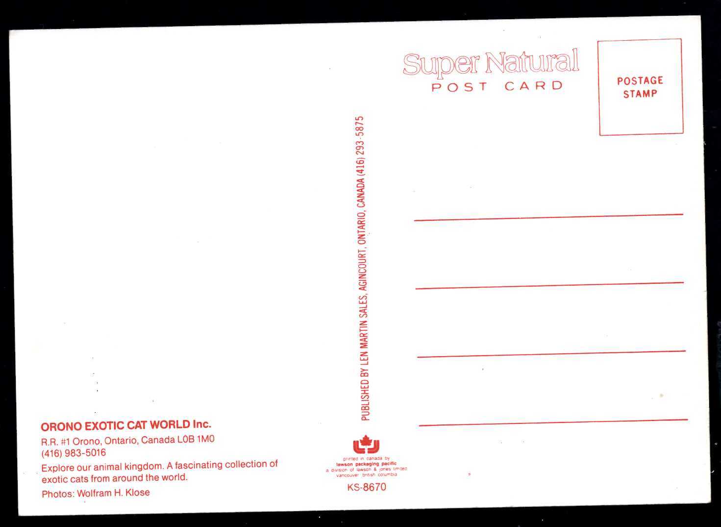 Canada Ontario ORONA Exotic Cat World ~ Cont'l
