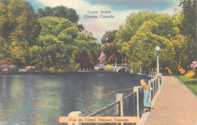 Canada Ottawa canal scene linen postcard