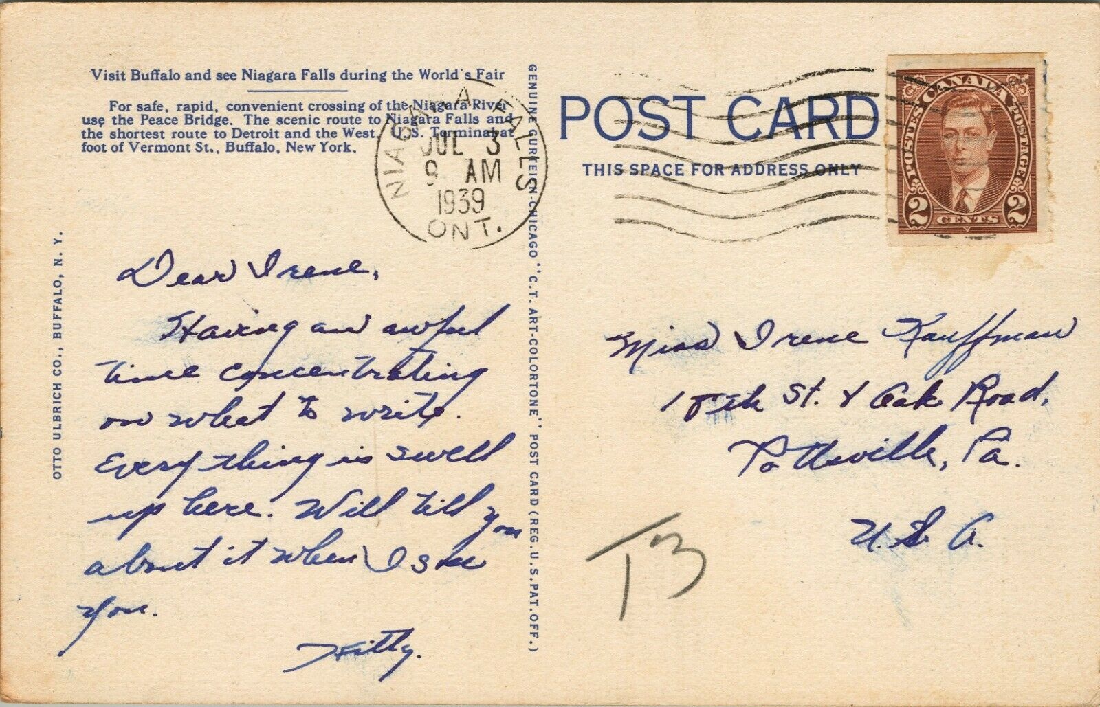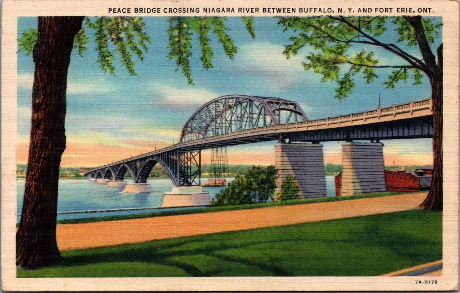 Canada Peace Bridge Between Niagara River Buffalo Linen Postcard 03.60