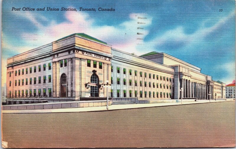 Canada Post Office and Union Station Toronto Canada Linen Postcard C081