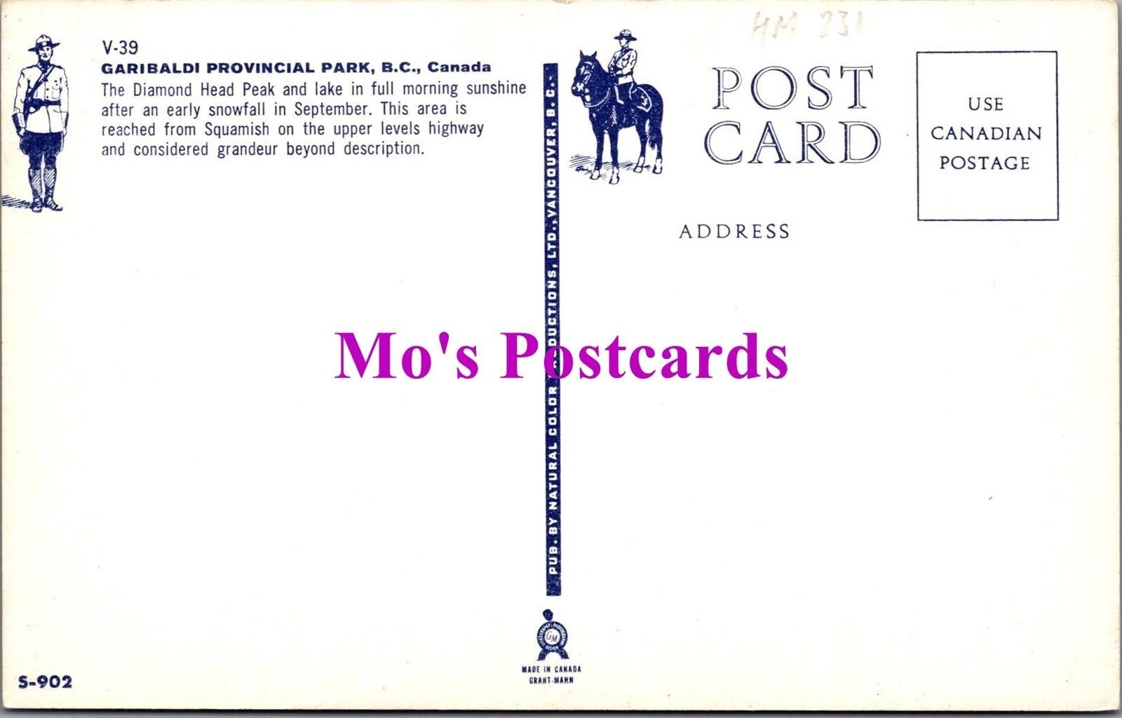 This is a Canada Postcard - Garibaldi Provincial Park, British Columbia HM231APublisher: Natural Color Productions LtdPostcard size: StandardPostcard defect(s): Please also use the image magnifier to make your own assessment on the condition. Please ignore any lines caused by the scanner.When possible all of our postcards will be posted to you inside a collectable plastic postcard sleeve and a board backed envelope which will be marked 'Please do not bend'.The 'Mo's Postcards' watermark does not appear on the actual postcard'.Mo's Ref: Canada Postcard - Garibaldi Provincial Park, British Columbia HM231A