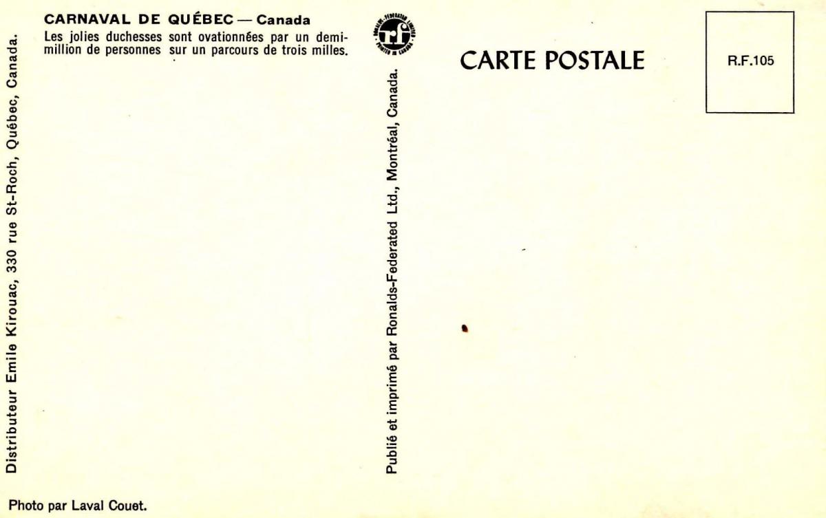 Canada - Quebec, Quebec City. Carnaval de Quebec --- * Grading of Postcards MINT (M): Perfect condition, no apparent blemishes, flaws, postally unused, may have some writing on back. NEAR MINT (NM): Like new, imag ... Read More