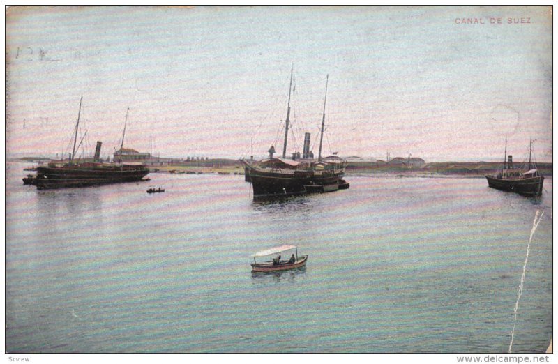 Canal Du Suez, Ships, Boat, EGYPT, PU-1915 :: Postcard, 3.5" x, 5.5", Litho, VG+, WOB, EW, CW