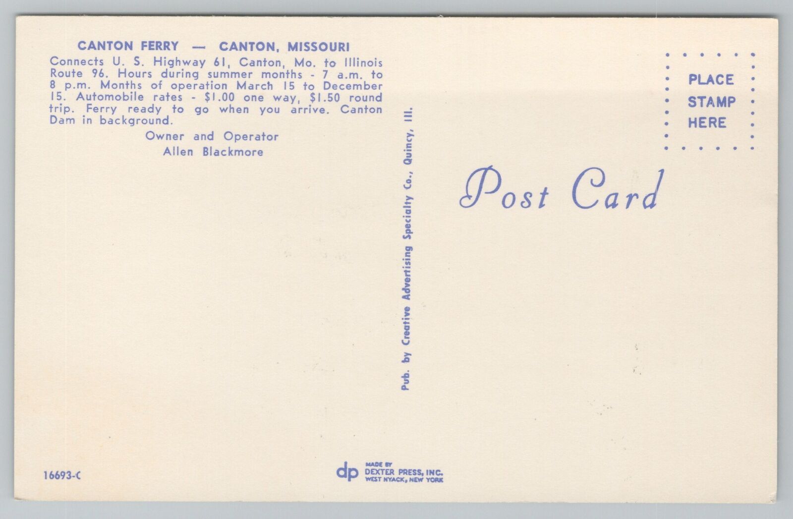 Canton MO~Auto Ferry Boat Crosses Mississippi River~Dam~Grain Elevator~1960s