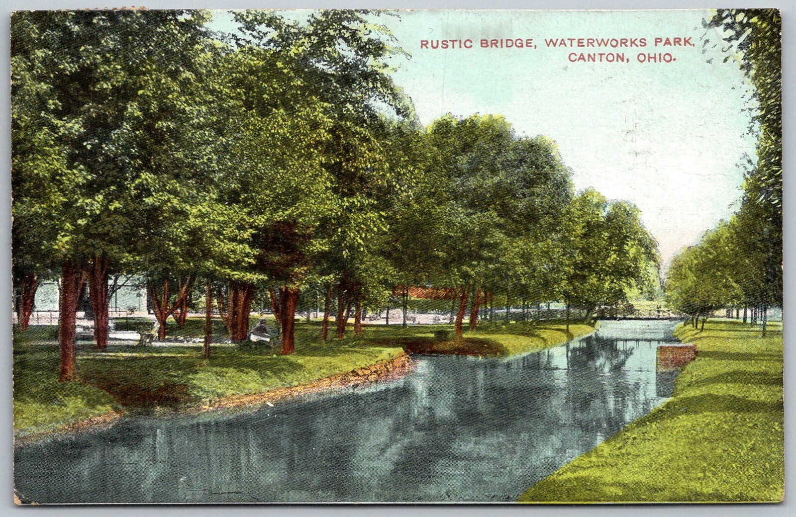 Canton Ohio 1908 Postcard Rustic Bridge Waterworks Park