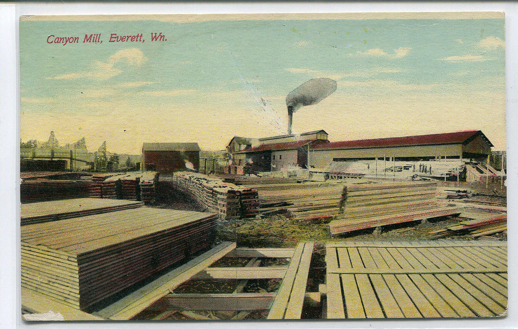 Canyon Saw Mill Lumber Logging Everett Washington 1910 postcard