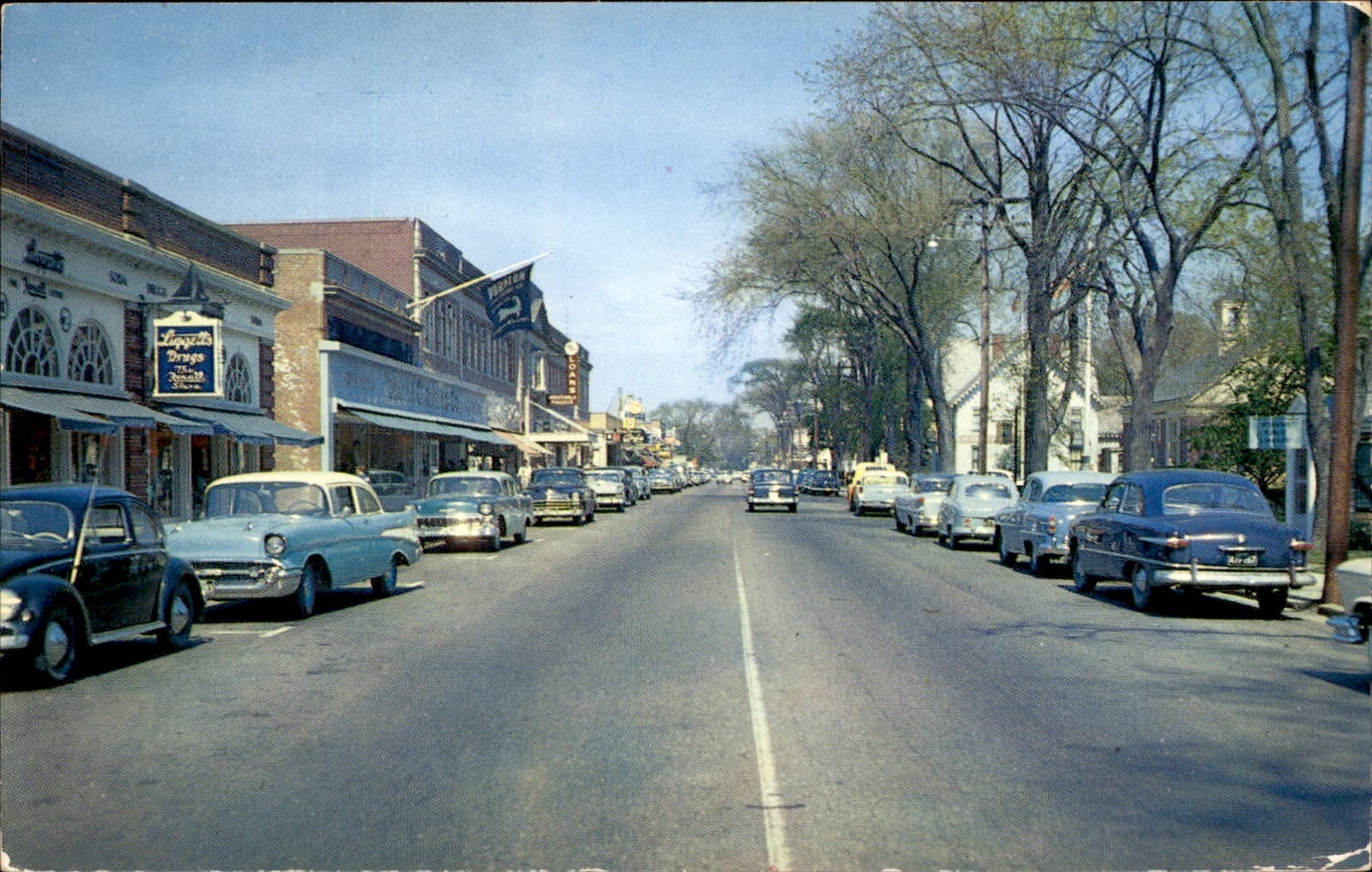 Cape Cod MA Hyannis Liggets, Library, Shops Main St 1950-60s Vintage Postcard