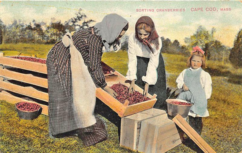 Cape Cod MA Sorting Cranberries Young Girls Postcard