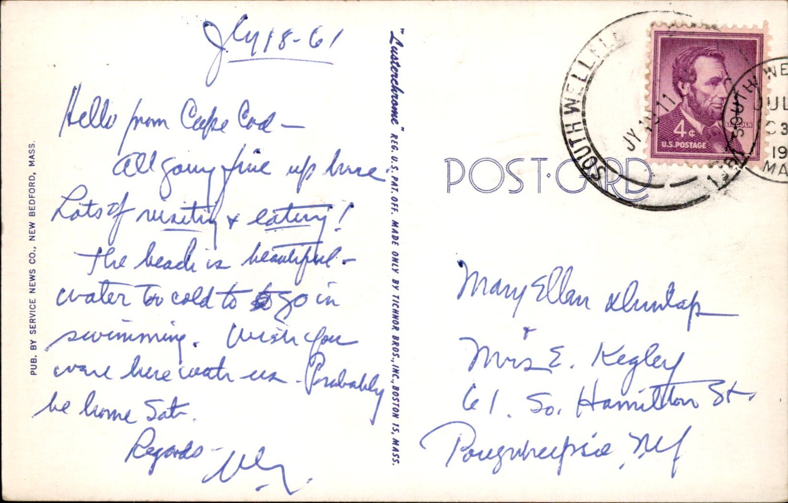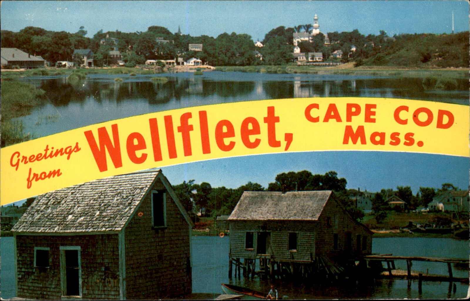 Cape Cod MA Wellfleet Large Letter Greeting c1950-60s Vintage Postcard