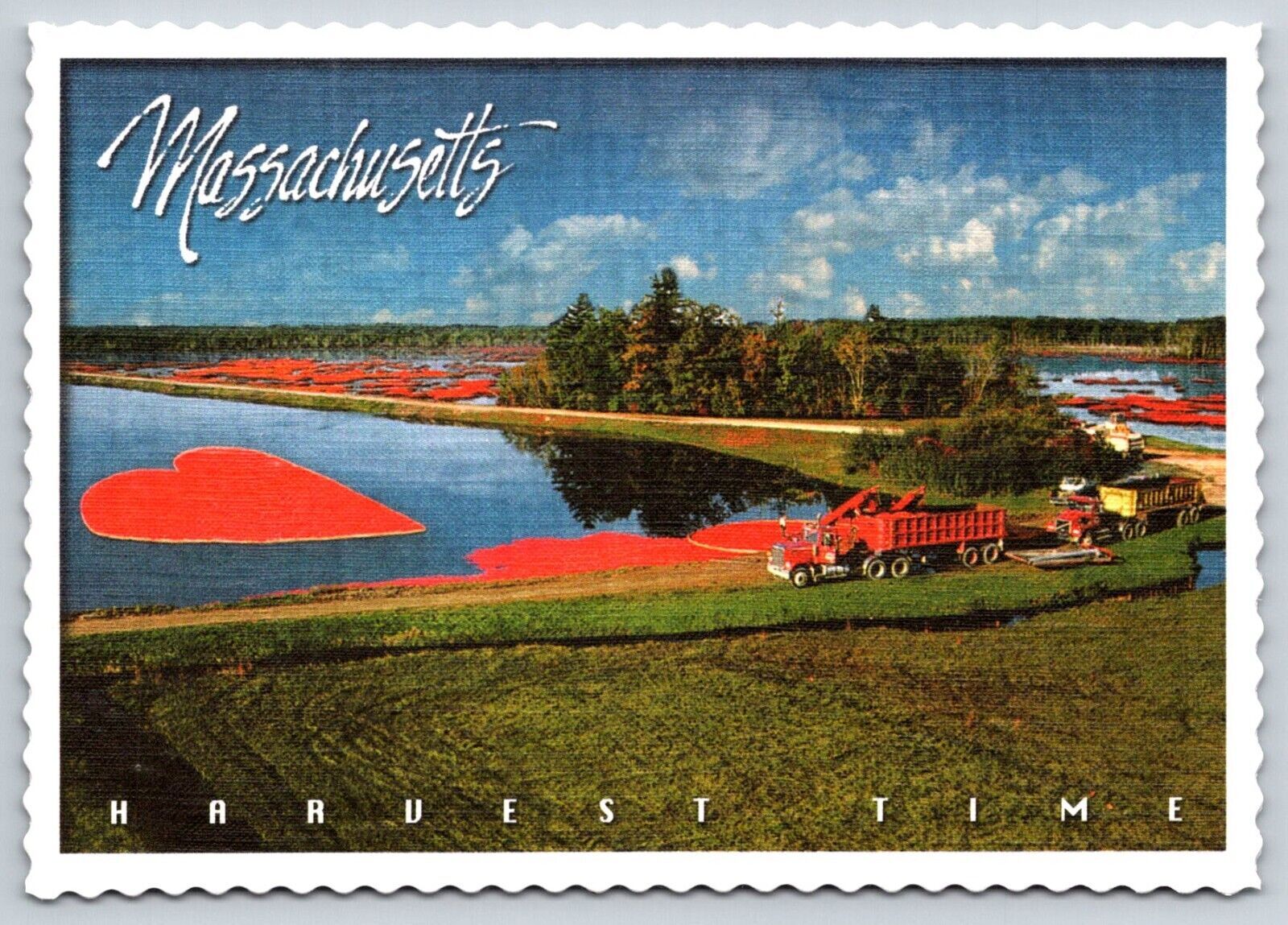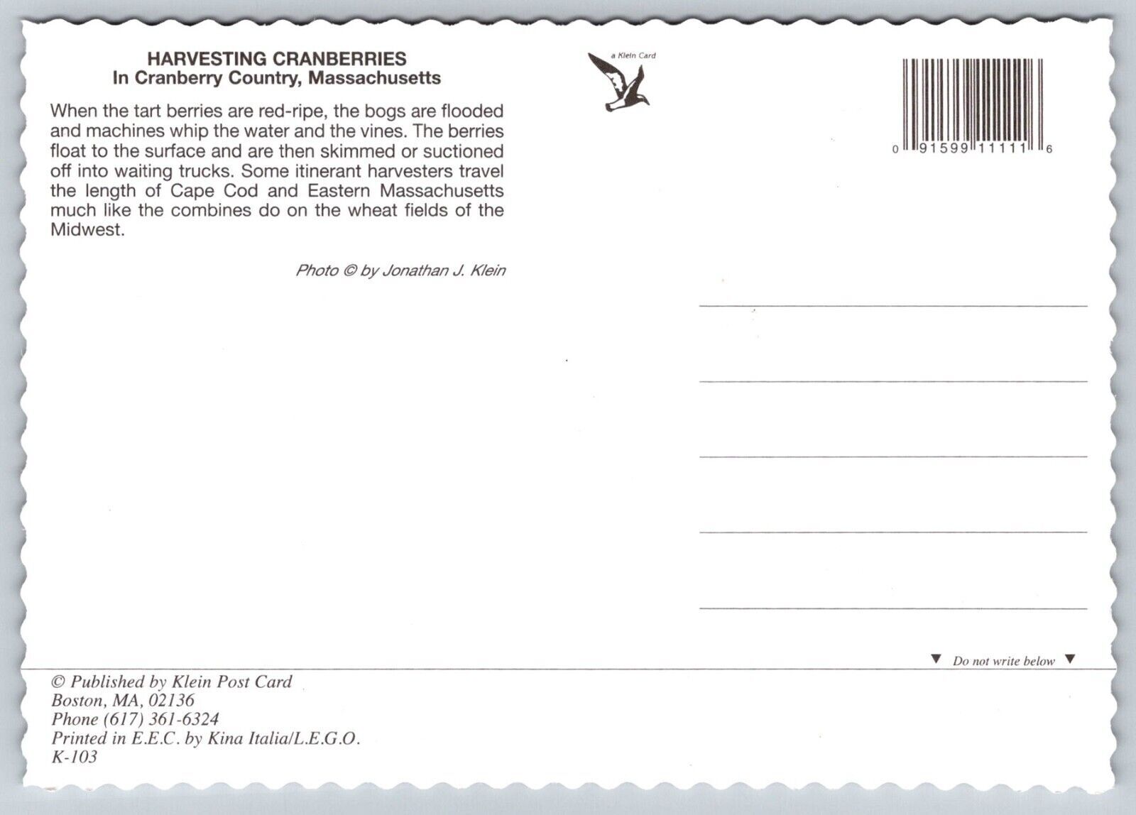 Cape Cod Massachusetts Cranberry Bog Harvest Time Stamp Postcard