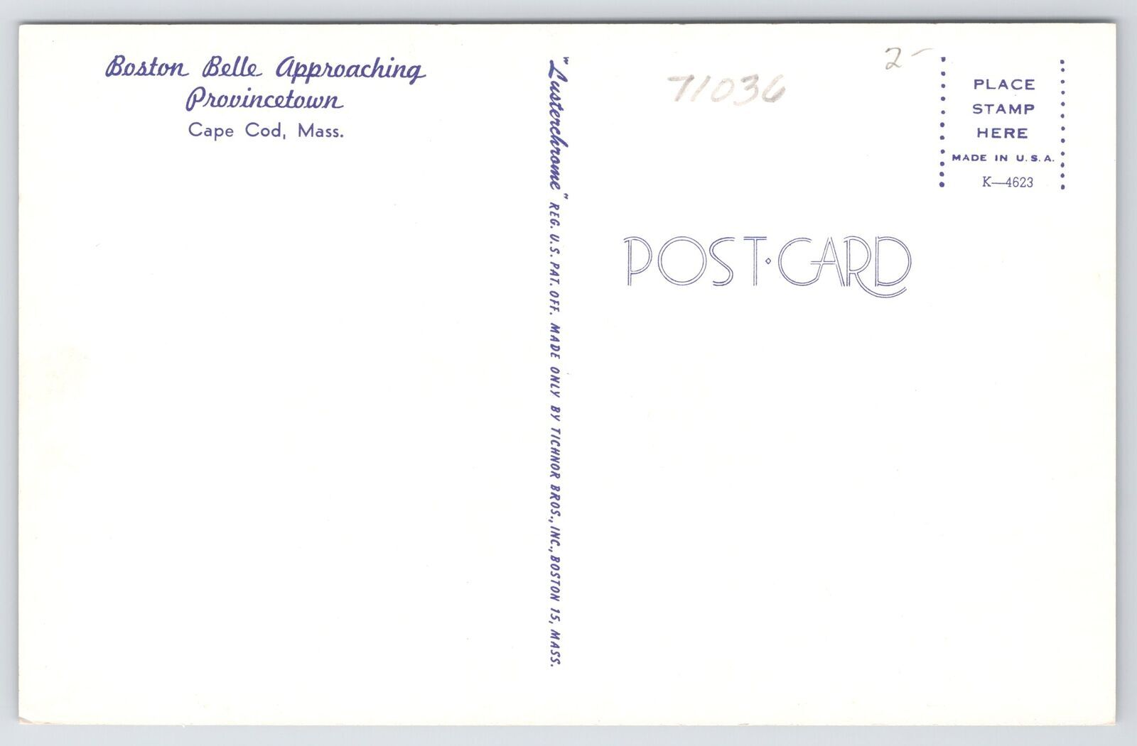 Cape Cod Massachusetts~Boston Bell Approaching Provincetown~1950s Postcard
