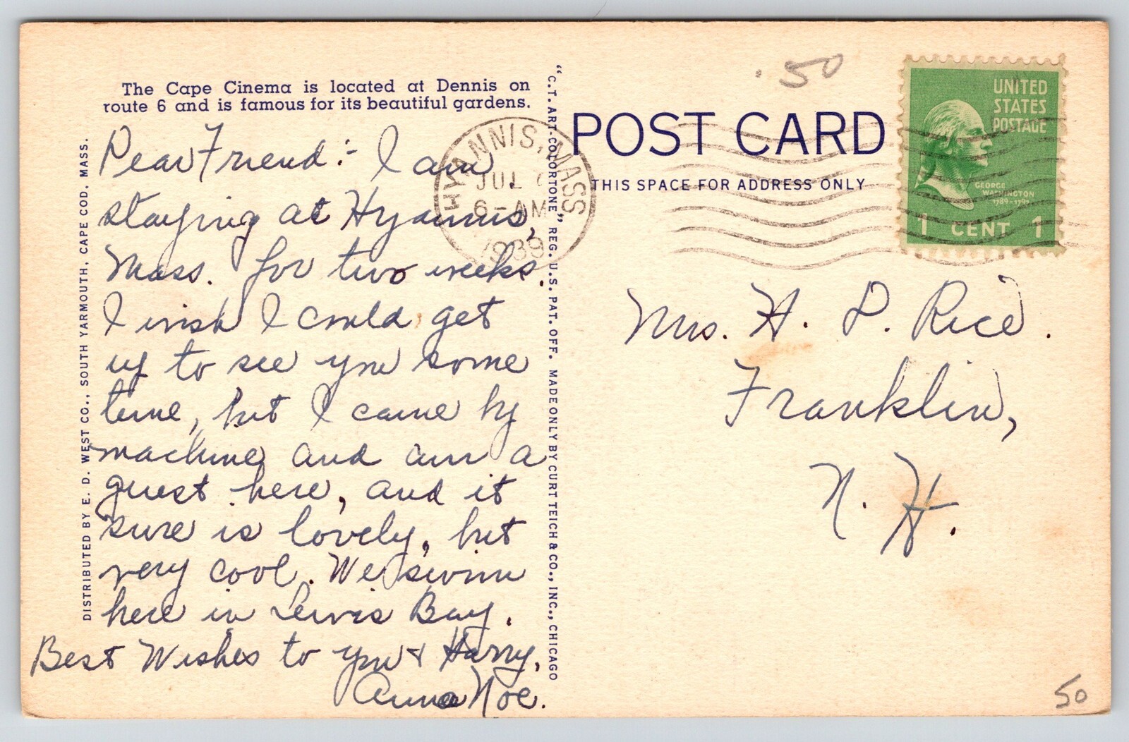 Cape Cod Massachusetts~Cinema Gardens~Flowers~Cupola~Neoclassical~Linen 1939 PC