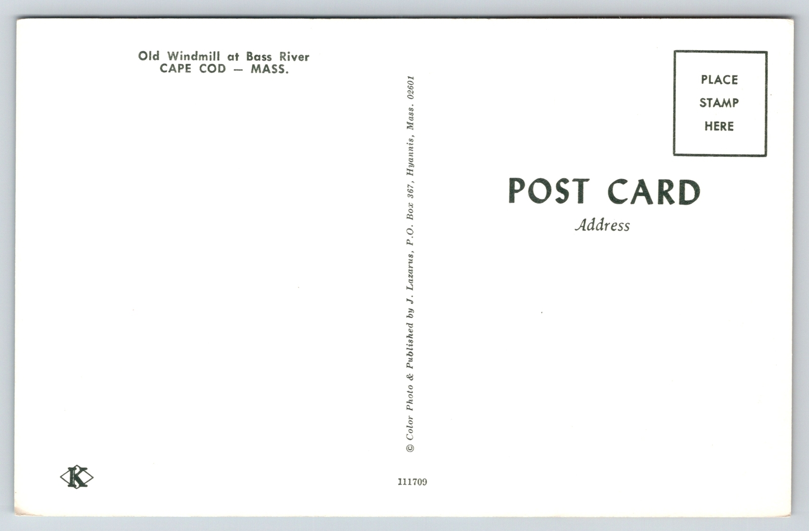 Cape Cod Massachusetts~Old Windmill @ Bass River~Vintage Postcard
